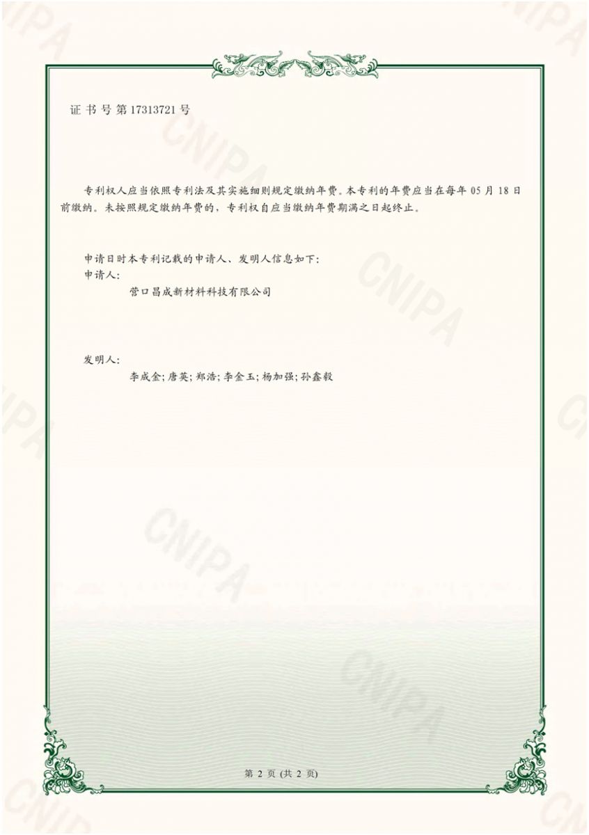 Copyright(C)2021,Yingkou Changcheng New Material Technology Co., Ltd. All Rights Reserved.